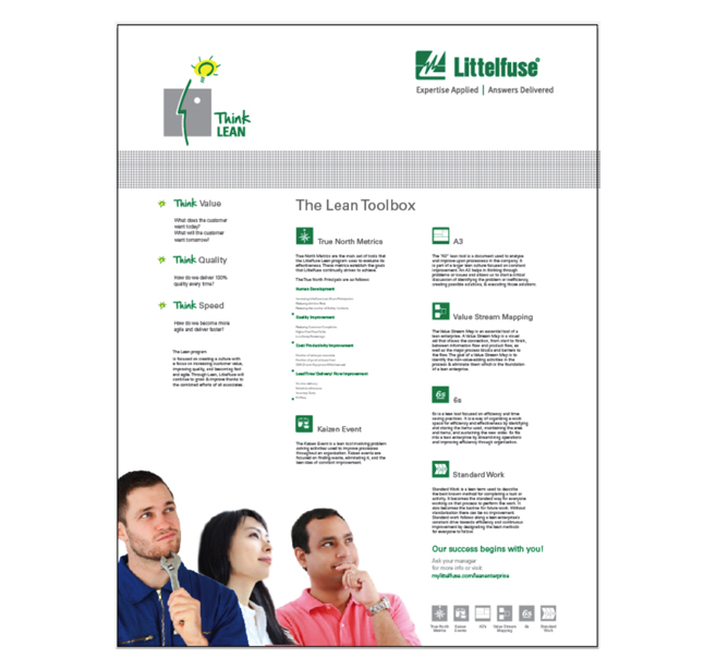 The Littelfuse Lean project represents one of the most extensive projects I have worked on to date. As an intern I was tasked with heading the development of an internal awareness campaign targeted at employees from every level of the company instructing them in the Lean Program; a program focused on creating an efficient work place.
